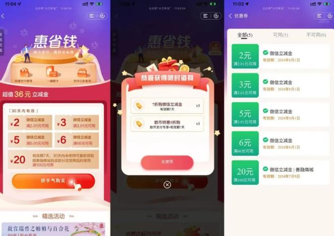 中国建设银行36元“惠省钱”立减金+最高168元“惠消费”立减金