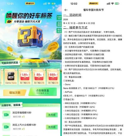 懂车帝抽红包最高888亓红包