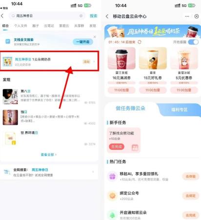 移动云盘周五神券日兑奶茶券